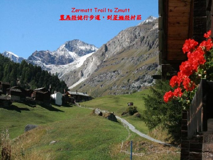 Zermatt on the balcony of houses are full of flowers, either purple or red, yellow or white, so pure and brilliant colors, waving in the breeze. 策馬特房舍的露台上,種滿花朵,不論紫或紅,黃或白,顏色那麽純淨 燦爛,迎風搖曳。