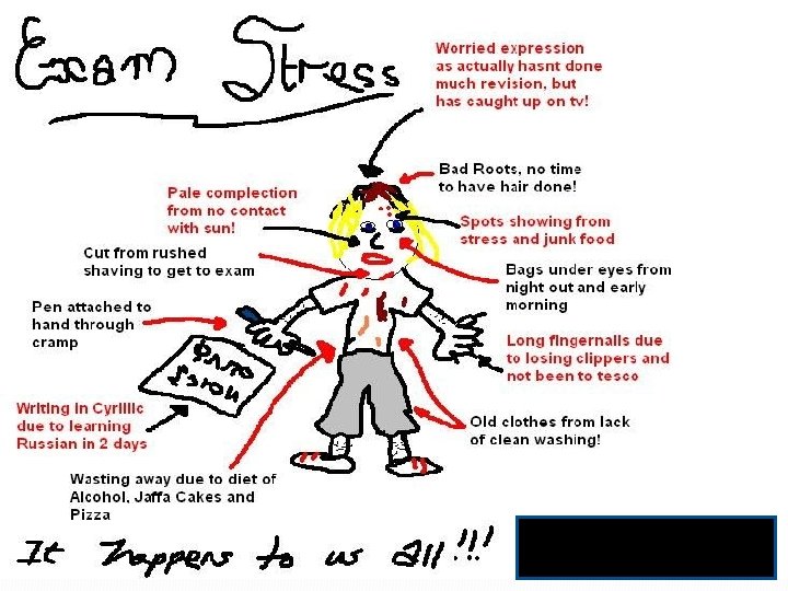 Before the exam �Revise !!!! �Practice answering questions to time �Know beforehand how much time you should allocate to each question according to the marks available �Have the right equipment ready �Eat and sleep well �Take time-out to relax �Remember that some adrenaline when going into the exam will help you perform better! BUT talk to someone in school or at home if you get too stressed.