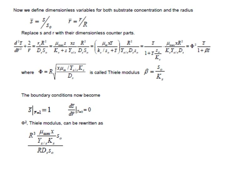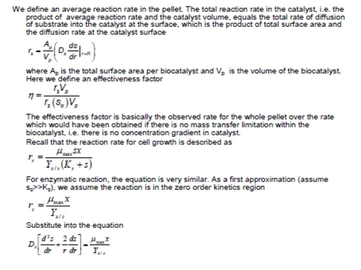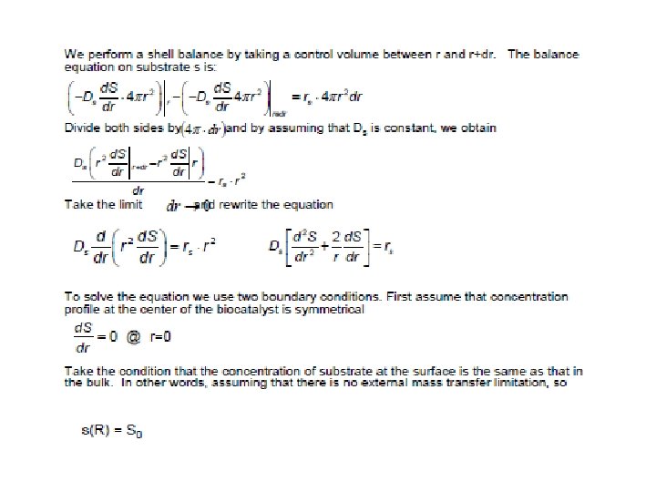 Intraparticle Mass Transfer where Assume: Immobilized enzyme is uniformly distributed (e. g. , homogeneously loaded); Transport of solute is described by Fick’s law; Isothermal reaction at constant p. H; Negligible electrostatic effects.