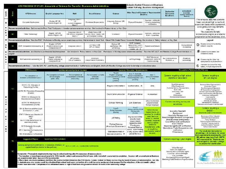 Programs of Study include • High School Courses • College Coursework: C-ID Course numbers • College Activities • Occupations specific to discipline • Certifications, Degrees, Outcomes • CTE transition activities: − Dual Enrollment − Concurrent Enrollment − Articulation