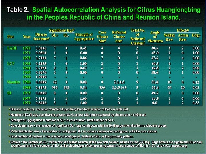 Analysis of disease progress of citrus huanglongbing in citrus groves in the People’s Republic of China and Reunion Island. LCF Liuzhou Citrus Farm Plot located near Liuzhou City, Guangxi Province, People’s Republic of China. LARI = Luizhou Agricultural Research Institute, Guangxi Province, the People’s Republic of China; RI = Reunion Island; R 2 coefficient of determination; b = slope of regression. Disease percentages were transformed by ln (y) and ln (y/(1 -y)) for exponential (EXP) and logistic (LOG) models, respectively.