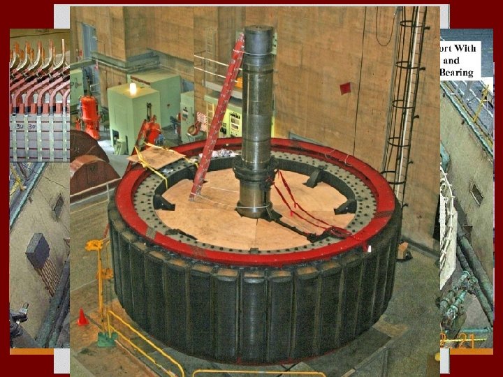 Alternátor - princip činnosti Frekvence výstupního napětí: Podle typu poháněcí turbíny rozlišujeme alternátory: 1. rychloběžné (turboalternátory) * pohon – parní nebo plynová turbína, ns = 3000 1/min p=1 Rotor má malý průměr, jeho délka může být několik metrů (poměr l/d 6) 2. pomaloběžné (hydroalternátory) * pohon – vodní turbína, ns 500 1/min p 6 Rotor má velký průměr, jeho průměr může být několik metrů (poměr l/d 0, 2)