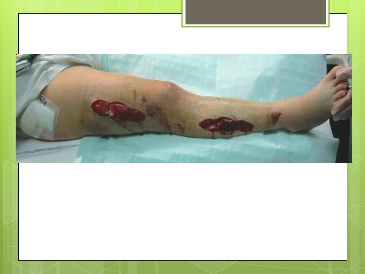 Syndrome des loges Physiopathologie : Augmentation de la P°dans la loge musculaire entraine une diminution du débit sanguin local par action en amont des capillaires, Conséquences : besoins métaboliques non assurés, ischémie puis oedème cellulaire qui augmente encore la P°dans la loge majorant la réduction du débit de perfusion : Mécanisme auto entretenu avec aggravation progressive Relargage de CPK et Mb avec risque d’IRA, d’hyperk+ et donc engagement du pronostic vital. Remarque : �� La pression dans la loge étant souvent < àla PA moy. Les pouls distaux restent longtemps perçus, de même