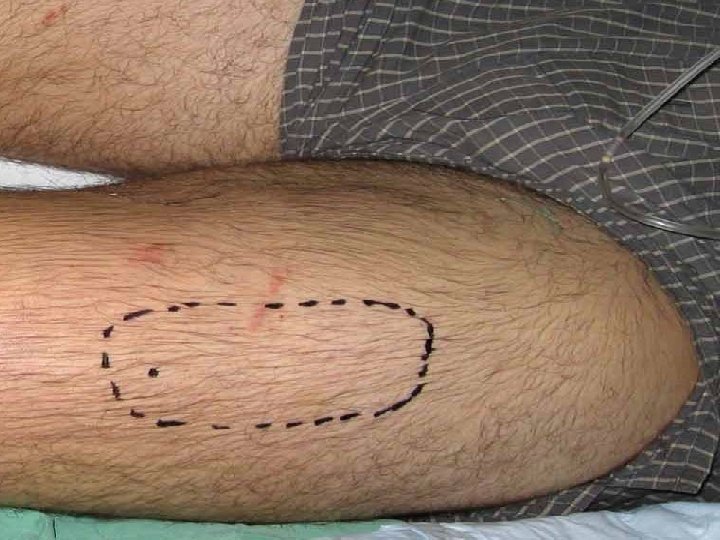 Mesure des Pressions : -loge musculaire normale : 10 -20 mm. Hg -pour certains : aponévrotomie si Pression IM > 30 mm. Hg -pour d'autres : si Pression différentielle (= Pression diastolique -P des loges)<30 mm. Hg Traitement: Aponévrotomie d'urgence (dans les 6 h); si doute : aponévrotomie Et remplissage vasculaire ( Nacl 0, 9 % , crush syndrome !)