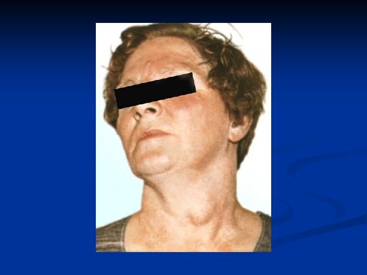 Clinical features of acute purulent thyroiditis n n n Acute onset, body temperature is above 38 -39°С, rigor, tachycardia. TG is expanded, algetic. Pain irradiates to an ear and a mandible. Complications: Abscess formation: symptom of fluctuation. Hyperemia of skin over the lesion focus. Fistulae may open to the front surface of a neck or to mediastinum (mediastinitis), phlegmon of a neck.