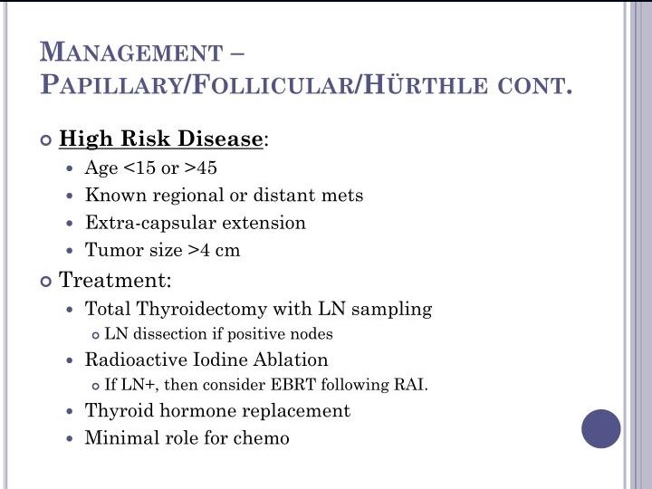 Treatment of acute thyroiditis n n Hospitalization to surgical department. Antibacterial therapy with broad spectrum antibiotics. Lancing and draining of abscess. ß-adrenoreceptor blockers ( propranolol 20 -40 mg 3 times a day till full liquidation of clinical manifestations will be obtained). Analgesics.