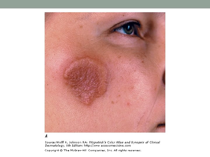 Question • A 54 yo man with a history of laryngeal cancer was admitted to the hospital for evaluation of fever and of a painful, erythematous eruption on back and chest. The patient denied any recent trauma, travel, gardening, or exposure to animals. No recent chemotherapy or radiation treatments. • PE T 101. 4, well demarcated, ecchymotic, tender, plaques were noted on back and chest, neck. • Labs WBC 13 k (86% PMN), Plt 404, Cr 1. 3. • The patient was given broad-spectrum antibiotics, but his condition did not improve.