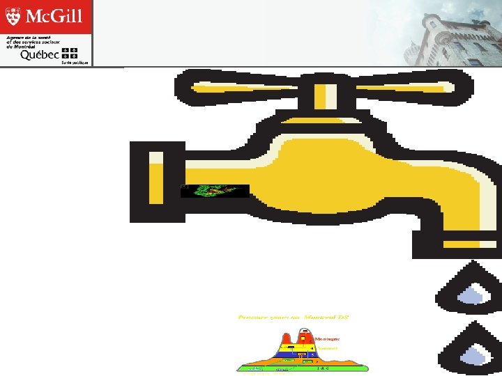 Vigie Multirisque: Data Sources v Emergency Departments w Currently: All 22 ED in Montreal via web form, total counts, no diagnosis or chief complaint w Future: Automated feeds under development, triage code and level, chief complaint, postal code v EMS Dispatch and Billing v Long-Term Care v Tele Health v Reportable Diseases