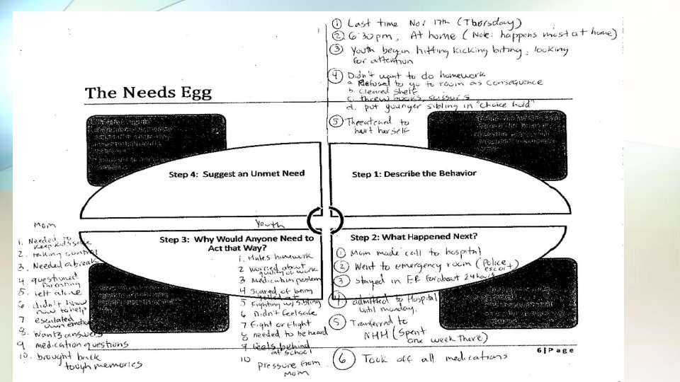 st 1 Wraparound Team Meeting • Team consisted of: School social worker, Post-Adopt Worker, FCSS, Family friends (natural supports), Community mental health therapist and case manager. • As a team, brainstormed strategies to help to meet underlying needs identified. Strategies include: • Addition of In-Home Family Support, focusing on relationship building between Mom and youth and safety • Improve communication with school