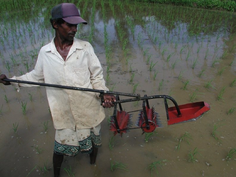 Allowing weeds to compete with rice If weeds are allowed a headstart, they will compete with the rice plants for sunlight, food, and space Weeds are the biggest problem under the SRI method, and farmers cannot become good at SRI until they master how to control weeds. The SRI way: temporary flooding, manual weeding, mechanical weeding, ducks