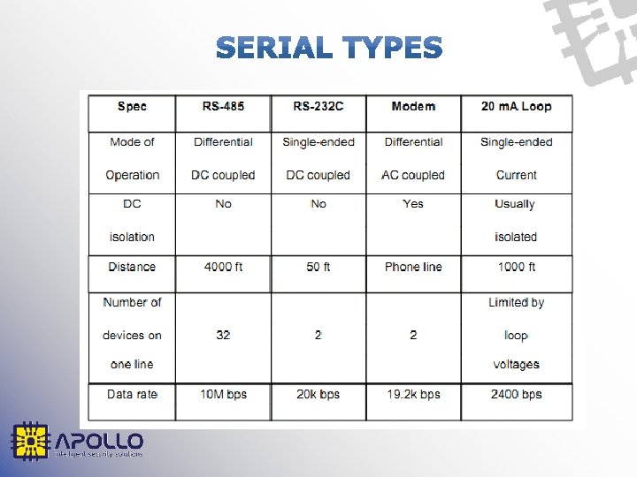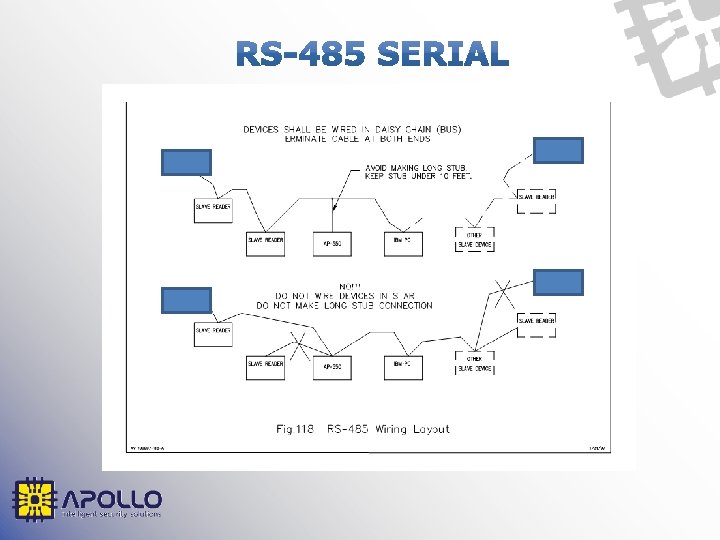 • Sometimes even the flexibility of RS 485 isn’t enough: Problem: Star wiring patter is needed Solution: APM-10 star wiring adapter Problem: Runs of longer than 4000 ft are required Solution: Extenders are available (including Apollo ENI-110 s)