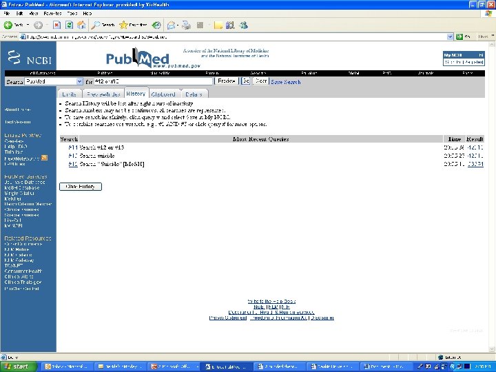 Searching l http: //www. ncbi. nlm. nih. gov/entrez/query. fcgi l Use the same principles for google – keep it short and sweet. l Key features ¡ Journals Database Me. SH Database Single Citation Matcher Clinical Queries