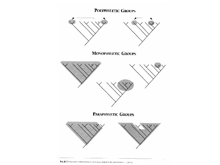 Monophyletic group-groups taxonomists try to form -give information that is critical for breeding programs and search for useful products Paraphyletic group-accepted by traditional taxonomist when group is phenetically different and can be identified by its morphology ex. Birds and Asclepidaceae. Polyphyletic group-taxonomist has made a mistake due to convergent evolution where species are not genetically closely related but have adapted to similar environments