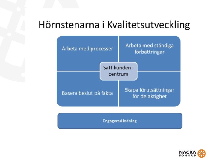 Vad är systematiskt kvalitetsarbete? § Långsiktigt och uthålligt arbete för att säkerställa att vi gör rätt saker på rätt sätt, för de vi är till för § Följa upp och säkerställa att vi verkligen gör rätt saker