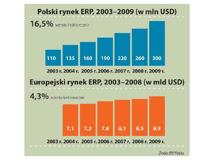 Rynek docelowy sytemów ERP • Duże przedsiębiorstwa – w większości już mają • Małe i średnie przedsiębiorstwa – zdobywają i będą używać