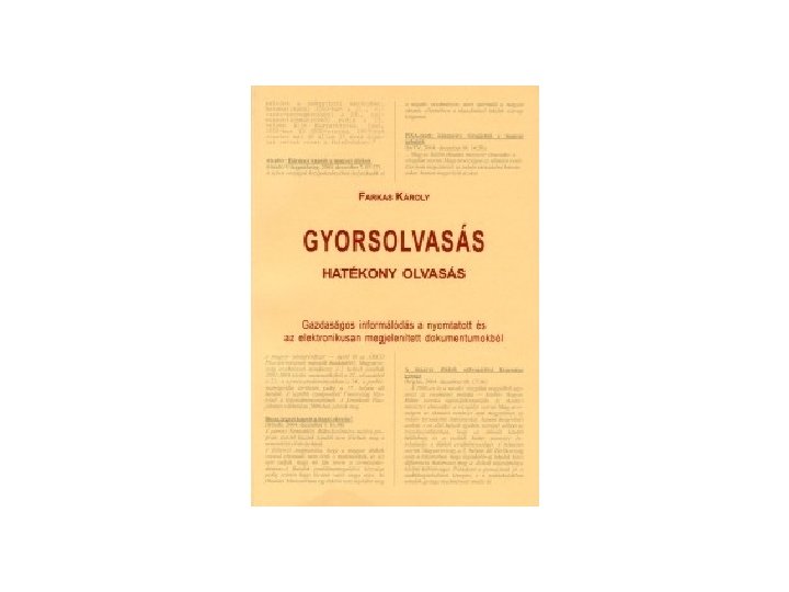 A gyorsolvasás Pog • az információ felvétel hatékonyabb, • elsősorban jobb megértést eredményező, • az olvasás sebességét valamint a figyelemösszpontosítás mértékét és formáját az olvasmányhoz, és az olvasás céljához igazító, • a hagyományosnál rendszerint gyorsabb, • különféle olvasási technikák kombinációja, • általában többszöri olvasás.