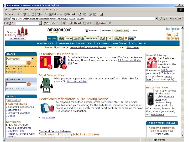 Az Amazon márkanevet • a felnőtt lakosság 55%-a ismerte 2000 -ben. • A Supersize me című filmben egyetlen riportalany sem tudta megmondani mi a kalória. • Az USA lakóinak többsége úgy tudja hazájuk lakósainak száma meghaladja a milliárdot, hisz az UFO-kban, az asztrológiában, a telekinetikában, és a vámpírokban.