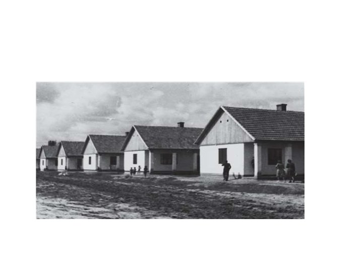 Produktív szociálpolitika • • ínségmunka bírálatából: nem megtérülő; segélyezetten nem segít családokat „produktívan” kiemelni a nyomorból (segély kölcsönként; önfenntartóvá válnak) főleg: sokgyerekes parasztcsaládok támogatása feltétel: munkakészség, megbízhatóság, „jó személyi tulajdonságok” szervezet: ONCSA 1940 kb. 330 ezer „megélhetésében veszélyeztetett” család 4 év alatt 12 ezer lakás