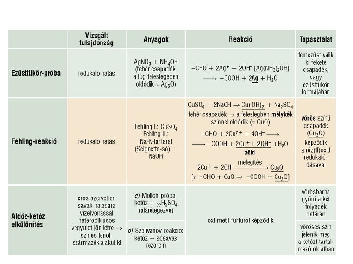• Kondenzáció után marad szabad glükozidos hidroxil csoport – redukáló cukor cellobióz, maltóz, laktóz • Nem marad – nem redukáló szaharóz