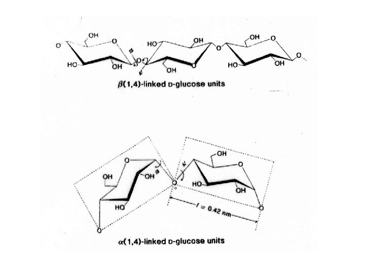 Csoportosítás • Monomerek fajtája a, α glükóz – keményítő, glikogén b, β glükóz – cellulóz • Kapcsolódás módja a, 1. -4. C – amilóz, cellulóz b, 1. -4. C + 1. -6. C – amilopektin, glikogén (elágazás)