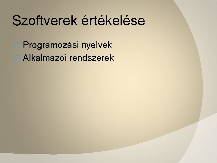 Szoftverek értékelése � Programozási nyelvek � Alkalmazói rendszerek