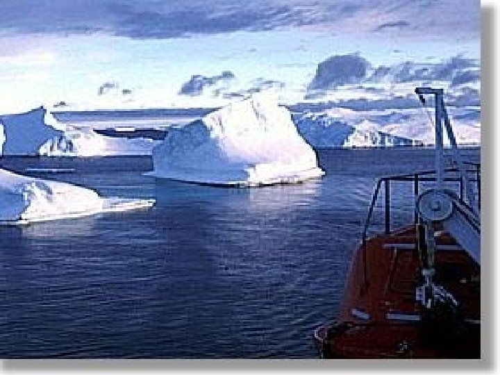 MANDRIJÄÄ • Mandri idaosas ulatub igijää üle 4 km. • Antarktika jääs peitub 70% maailma mageveest. • Antarktika jää all on üsna vahelduv reljeef. • Mandri kõrgemad tipud on Vinsoni mägi 5140 m • ja rannikul asuv tegevvulkaan Erebus 3800 m. Antarktika vetes varitsevad meresõitjaid mandrilt merre murdunud jäämäed.