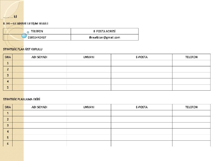 Stratejik plan hazırlamakla yükümlü kılınmış tüm kurumlar aşağıda belirtilen ekip ve kurulları formla İlçe Milli Eğitim Müdürlüğüne bildirmek zorundadırlar.