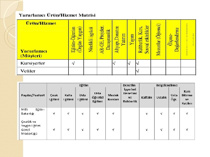 Paydaş Analizi: Okul/kurumun yöneticisi plan hazırlıklarına katılmış mı? Paydaşlar belirlenerek sınıflandırılmış mı(paydaş sınıflandırma matrisi)? Paydaşların neden paydaş oldukları belirtilmiş mi? Sunulan ürün ve hizmetlerle paydaşlar ilişkilendirilmiş mi (yararlanıcı-ürün/hizmet matrisi)? Paydaş görüşlerinin nasıl alındığı ve plana nasıl yansıtıldığı anlatılmış mı? Planın hazırlanmasına okul/kurum dışından hangi kurum ve kuruluşların katılımı sağlanmıştır?