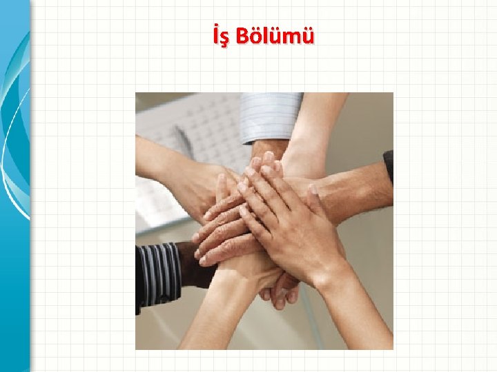 İŞ BÖLÜMÜNÜN YARARLARI 1. Verimi artırır 2. İşler daha kısa zamanda öğrenilir. 3. Personel dar bir alanda ustalaşacağından kendilerinden daha etkili bir şekilde yararlanılır. 4. Nitelikli (kaliteli) ürün, hizmet elde edilir. 5. Karmaşık amaçların başarılmasını daha kolaylaştırır.