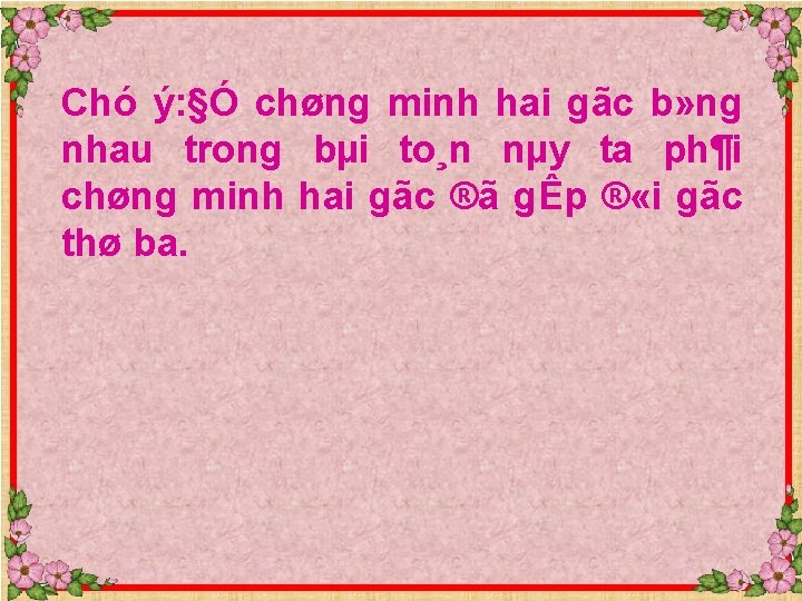 Tù Chóchän: ý: §Ó chøng minh hai gãc b» ng nhau trong bµi to¸n nµy ta ph¶i chøng minh hai gãc ®ã gÊp ® «i gãc thø ba.