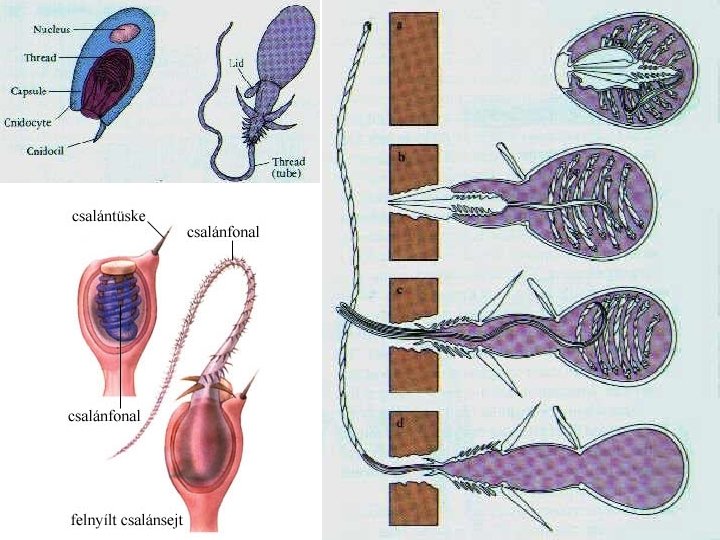 T: Csalánozók • Származás: Egysejtű eukarióta • Szerveződés: Az első valódi szövetes állatok, bélcsíra fejlettségi szinten