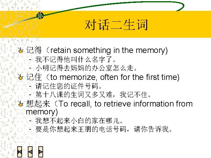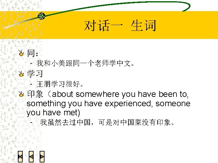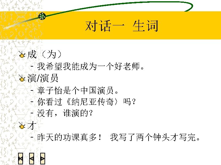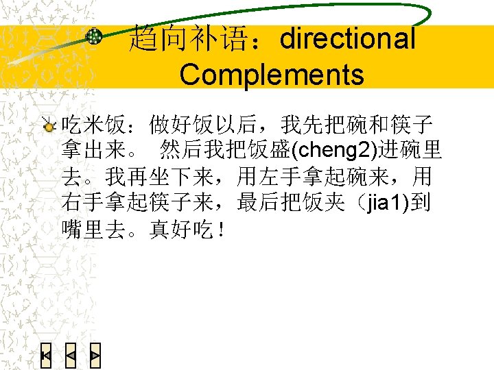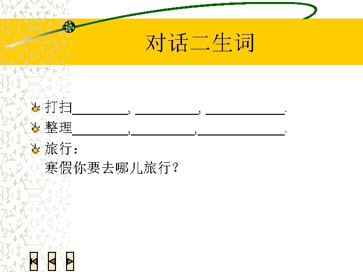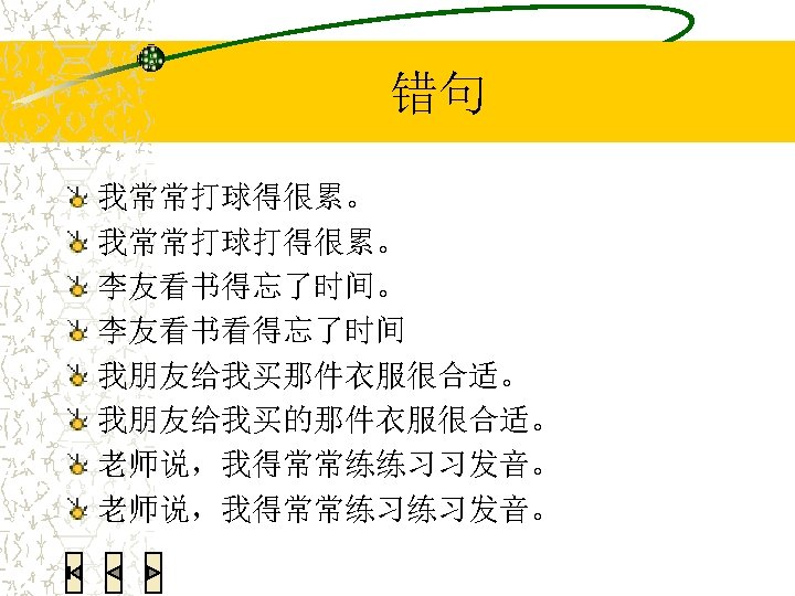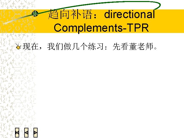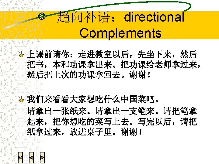 语法练习:翻译 We all had a very good time last week. 我们上个星期玩儿得很高兴。 He was so happy that he jumped. 她高兴得跳起来了。 She smiled in a very lovely manner. 她笑得很可爱。 I couldn’t find my Chinese textbook. Can you help me look for it? 我找不到我的中文书了。你能帮我找找吗?