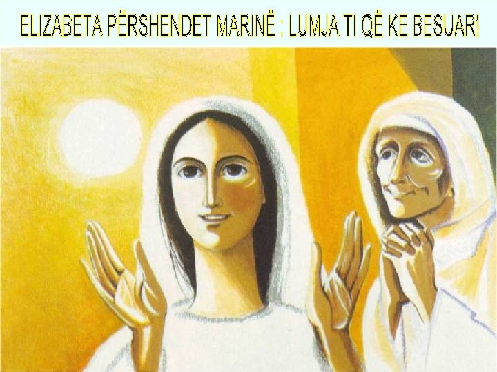 Kur një person, o Mari, do me të vërtetë Hyjin, do edhe të afërmin. Sa më shumë është i gatshëm ndaj Hyjit, aq më shumë i hapur është ndaj të afërmit, ashtu siç ke bërë Ti, dhe ashtu siç ka bërë Jezusi, që nuk ka ardhur për të qenë i shërbyer, por për të shërbyer dhe për të dhënë jetën e Tij për shpëtimin e të gjithëve. O Mari, që për dashuri, u bërë shërbëtorja e Hyjit dhe shërbëtorja e njerëzve, ti e di që Hyji na ka dhënë edhe neve mundësinë që të ndihmojmë të afërmin. Lutu që të mësojmë të fitojmë mbi dembelësitë tona dhe mbi rrezikun e të menduarit vetëm për veten tonë. Të shërbesh është lodhje, por është edhe gëzim.