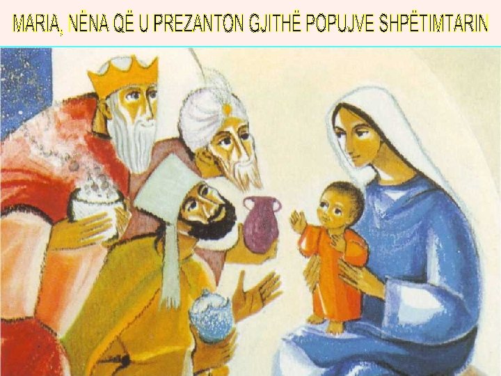 Ti, o Mari, që kishe mirëpritur me gëzim barinjtë e popullit tënd, të varfër dhe të përbuzur, ke mirëpritur me mahnitje magjistarët, të pasur dhe të ditur, që vinin nga vende të huaja dhe kishin përballuar vështirësi e peripeci të shumta për të kërkuar Jezusin që e njihnin si mbret të Judenjve. Përballë veprimeve të tyre të adhurimit dhe dhurateve duhet të jesh e mrekulluar. Por, prania dhe besimi i këtyre personave, të huaj për popullin tënd, por të gatshëm për të rinjohur në Jezusin të shumëpriturin e paganëve, të ka sjellë gëzim të madh. O Mari, lutu që të gjithë të mësojmë të rinjohim Jezusin dhe ta adhurojmë. Dhe që të gjithë, të shpëtuar prej Tij, të ndihemi vëllezër dhe bij të Hyjit.