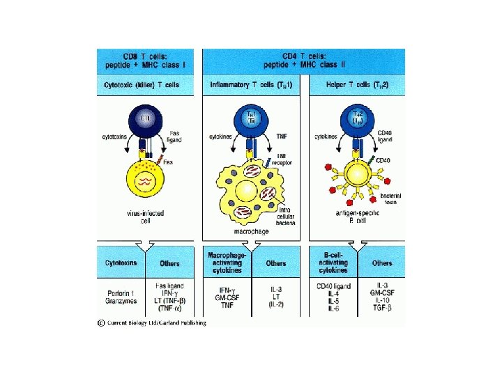 T cell development is marked by cell surface molecule changes As T cells mature in the thymus they change their expression of Tc. R-associated molecules and co-receptors. These changes can be used as markers of their stage of maturation Large double positive Double negative Small double positive CD 3+ Tc. R -chain + Tc. R + pre-Tc. R + (p. T CD 4+, 8+ CD 8+ Tc. R+ 98% CD 3+ CD 4 -, 8 - CD 3/Tc. RCD 4 -, 8 - Single positive CD 3+ Tc. R + CD 4+ Single positive CD 3+ Tc. R + CD 8+