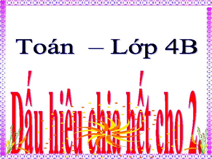10 : 2 = 5 32 : 2 = 16 14 : 2 = 7 36 : 2 = 18 28 : 2 = 14 Số chia hết cho 2 là số chẵn Chẳng hạn: 0; 2; 4; 6; 8; …; 156; 158; 160; . . . là các số chẵn.