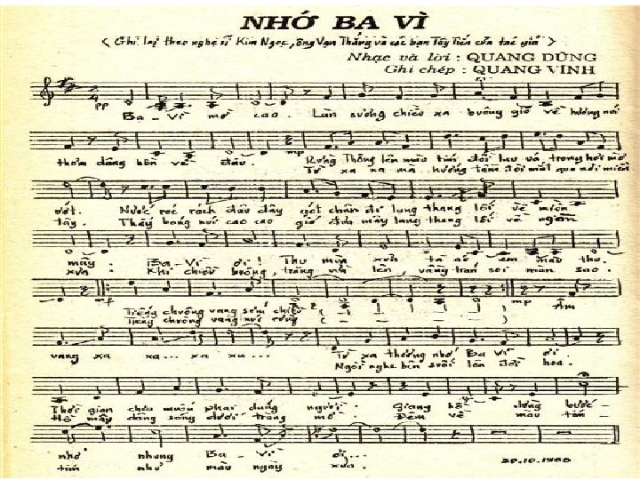 • Những miền đất lạ gợi sự xa xôi, hẻo Sài Khao lánh, hoang dã, nơi Mường Lát đoàn quân Tây …. . gắn với những kỷ niệm cụ thể. Tiến đã đi qua. Sài Khao sương lấp đoàn quân mỏi Mường Lát hoa về trong đêm hơi. * Hình ảnh: đoàn quân mỏi hoa về trong đêm hơi Hình ảnh giàu chất hiện thực Gợi cho ta liên tưởng tới hình ảnh đoàn quân Tây Tiếng đi trong lớp sương khói lung linh huyền ảo, như thực như mọng của rừng núi. NĐT lãng mạn của nhà thơ Quang Dũng.