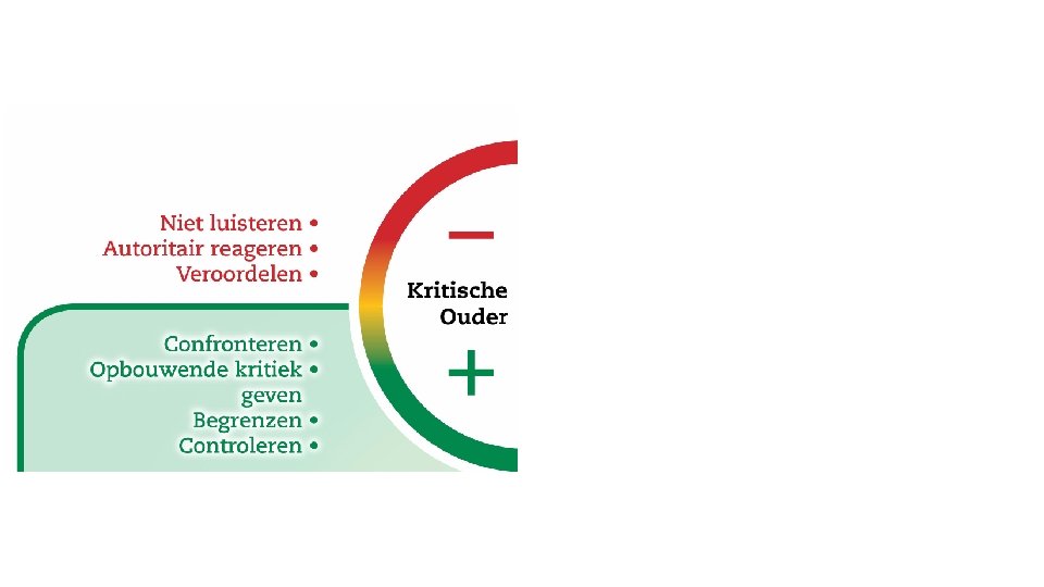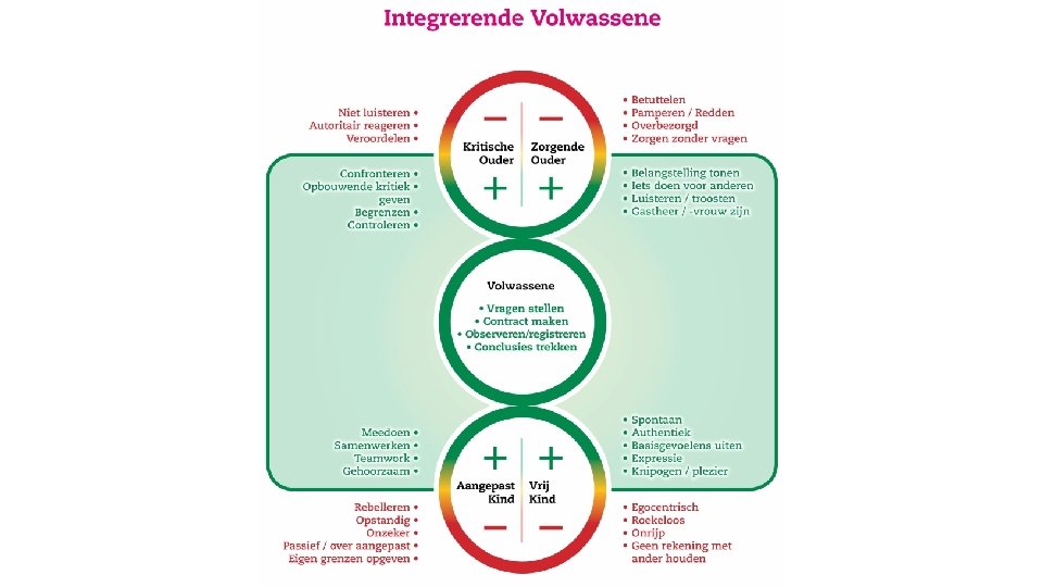 + Kritisch - + Voedend - Logisch In het hier en nu ++ ++ Aange- vrij past -- - Ouder Volwassene Kind
