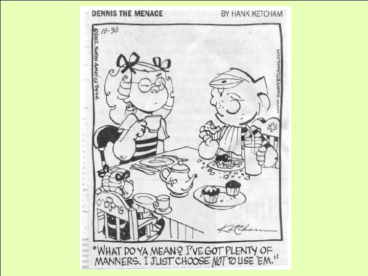 Summary • If you apply basic principles of setting the table, table service and manners you can create a pleasant atmosphere so that your relationships and appearance of food are enhanced. • Good manners show respect for others.
