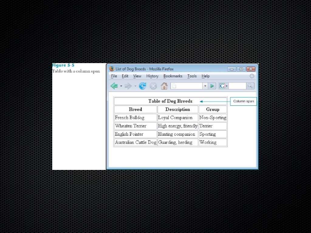 Spanning Columns The colspan attribute lets you create cells that span multiple columns of a table Column cells always span to the right
