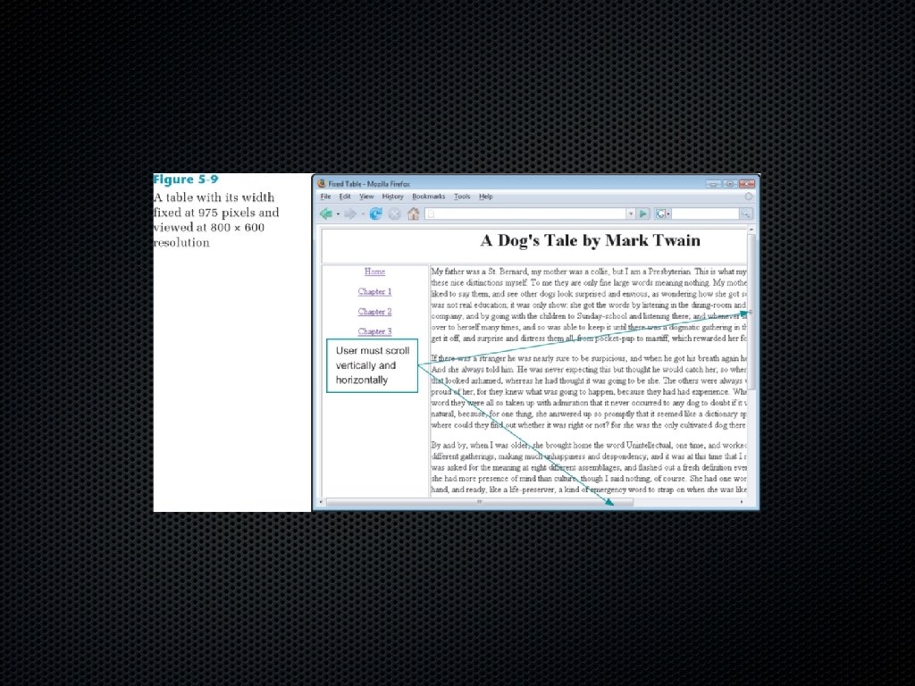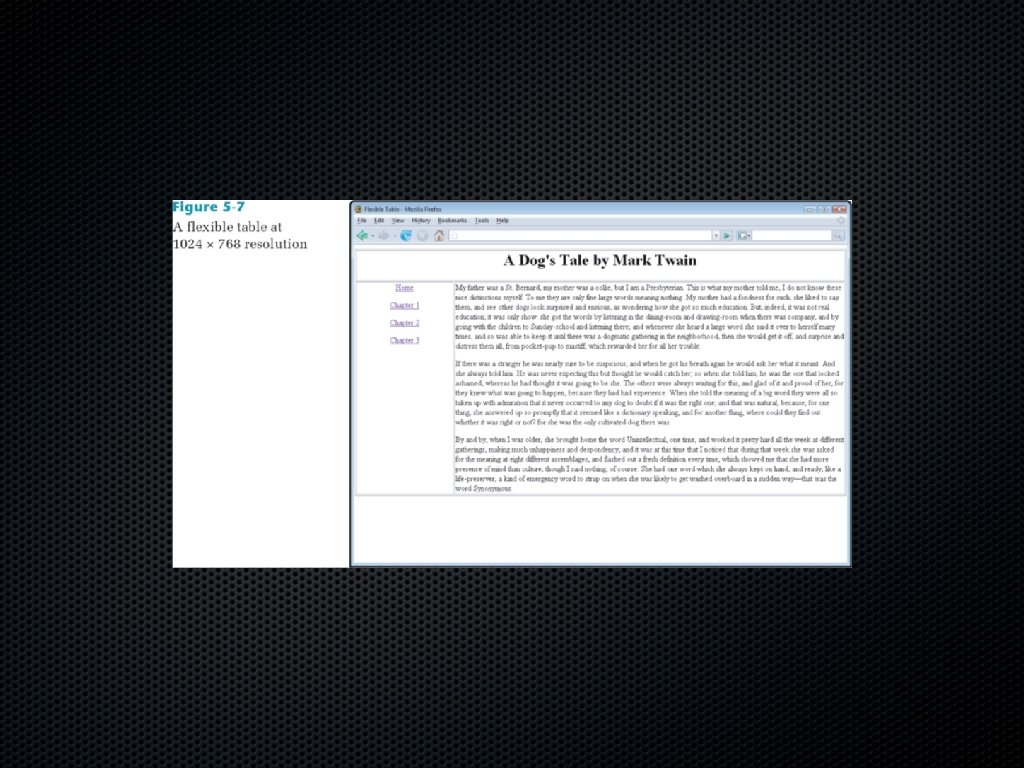 Summary Work on your pages with the table borders turned on, which displays the cell boundaries When you are finished with your layout, you can turn the borders off Size your tables based on the page size you want to create Use 1024 x 768 as your base screen resolution In most cases you’ll set the width but not the height of your tables, allowing the content to flow down the page