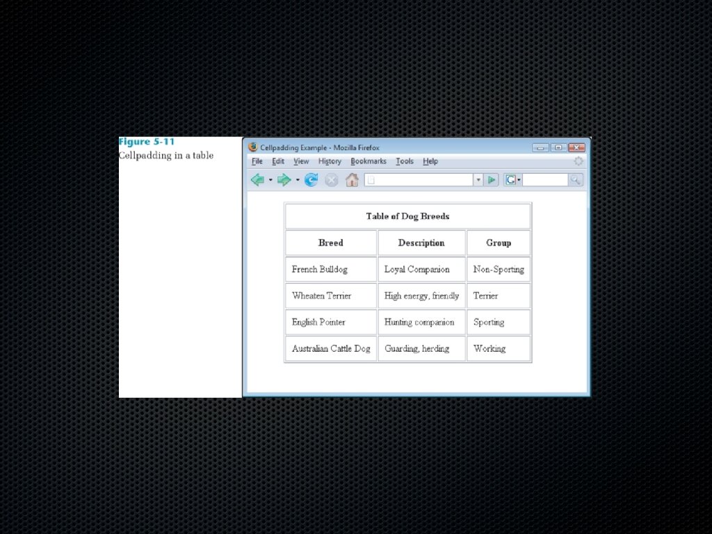 Adding White Space in a Table You can add white space into a table with the cellpadding and cellspacing attributes