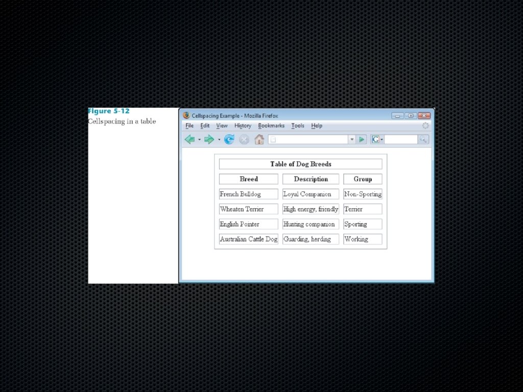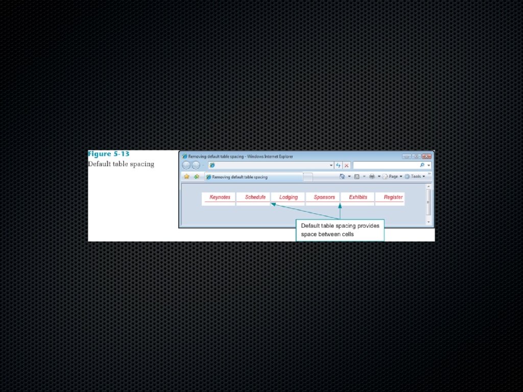 Removing Default Table Spacing Default spacing values are included in the table even when you don’t specify values for the table’s border, cellpadding, or cellspacing attributes Depending on the browser, approximately two pixels are reserved for each of these values You can remove the default spacing by explicitly stating a zero value for each attribute