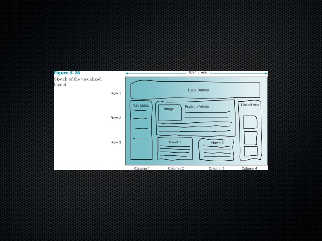 Creating a Page Template In this example you’ll see how to take a design sketch for a Web page and build a template for the page layout Figure 5 -20 shows a sketch of the desired layout This layout is designed for a base screen resolution of 1024 x 768, so the table will be fixed at a width of 975 pixels