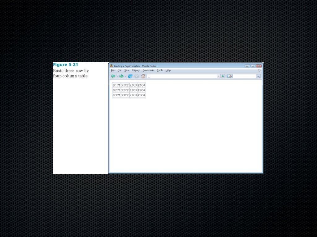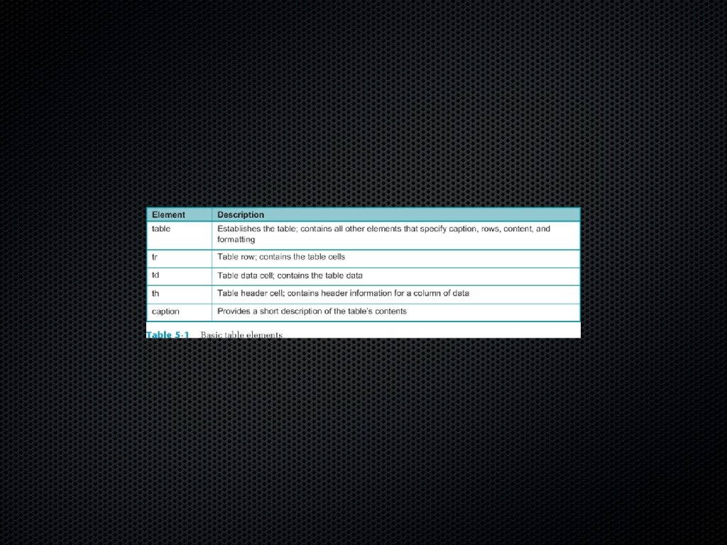 Using Table Elements To build effective page templates, you must be familiar with the HTML table elements and attributes The <table> element contains the table information, which consists of table row elements <tr> and individual table data cells <td> These are three elements you will use most frequently when you are building tables