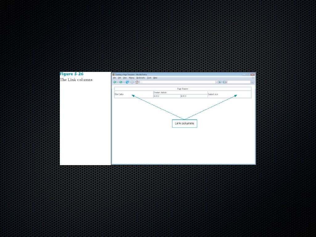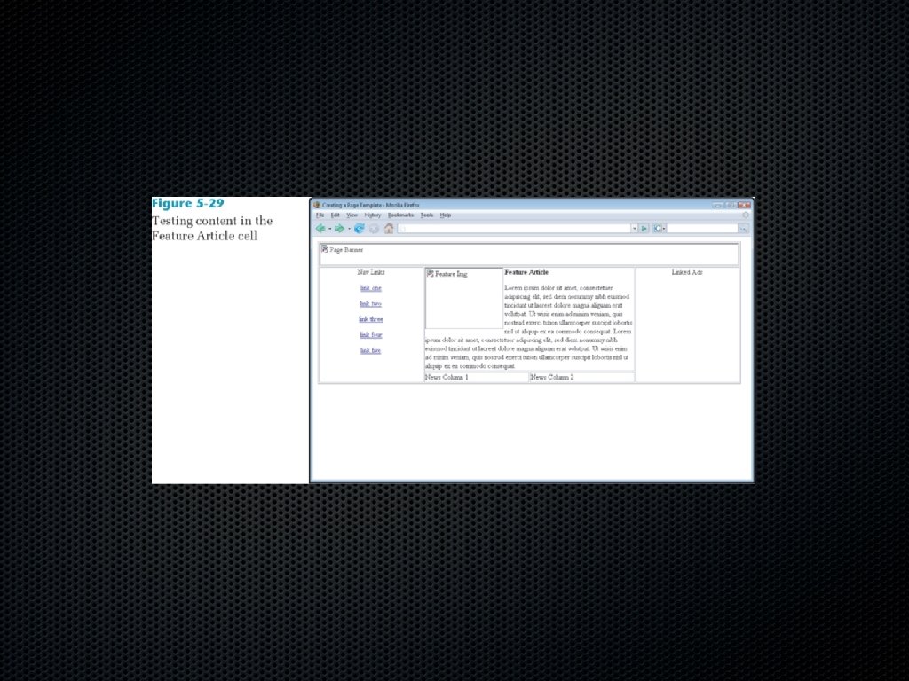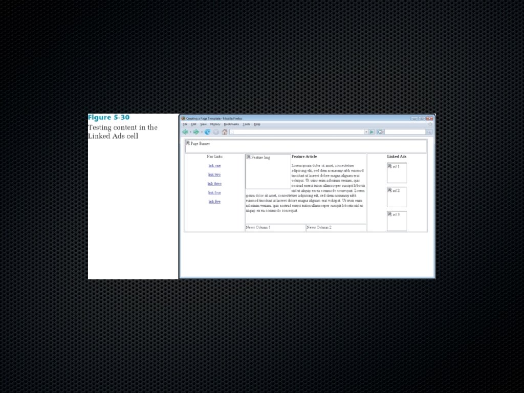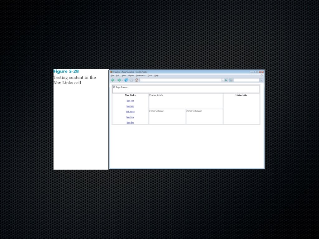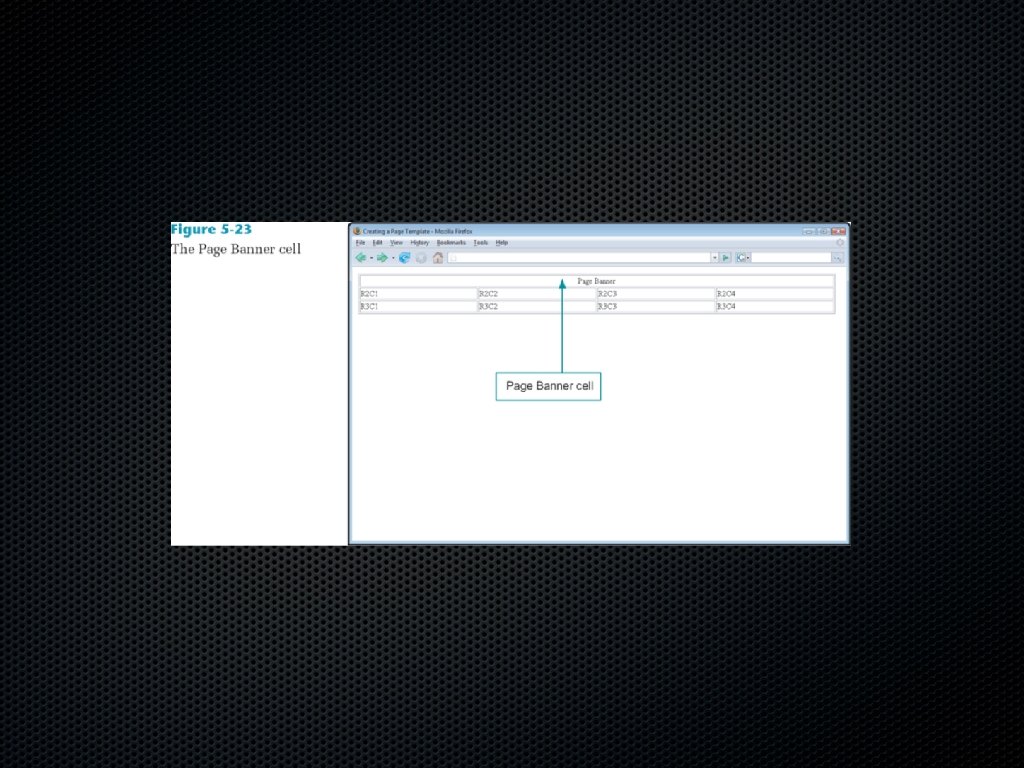 Creating a Page Template Notice that the basic structure of the table is three rows by four columns Each column uses 25% of the total width of the template Row spans and column spans break across the layout to provide visual interest