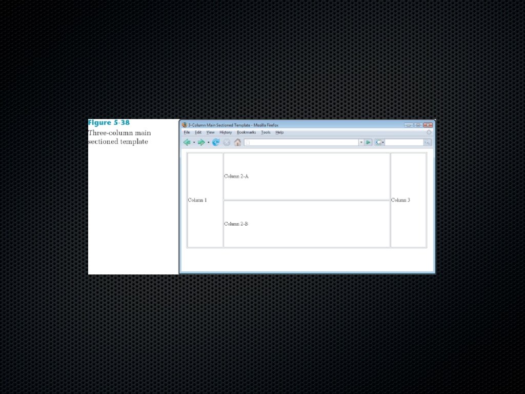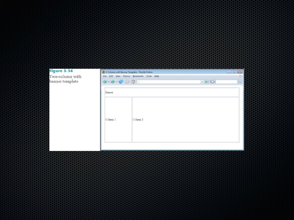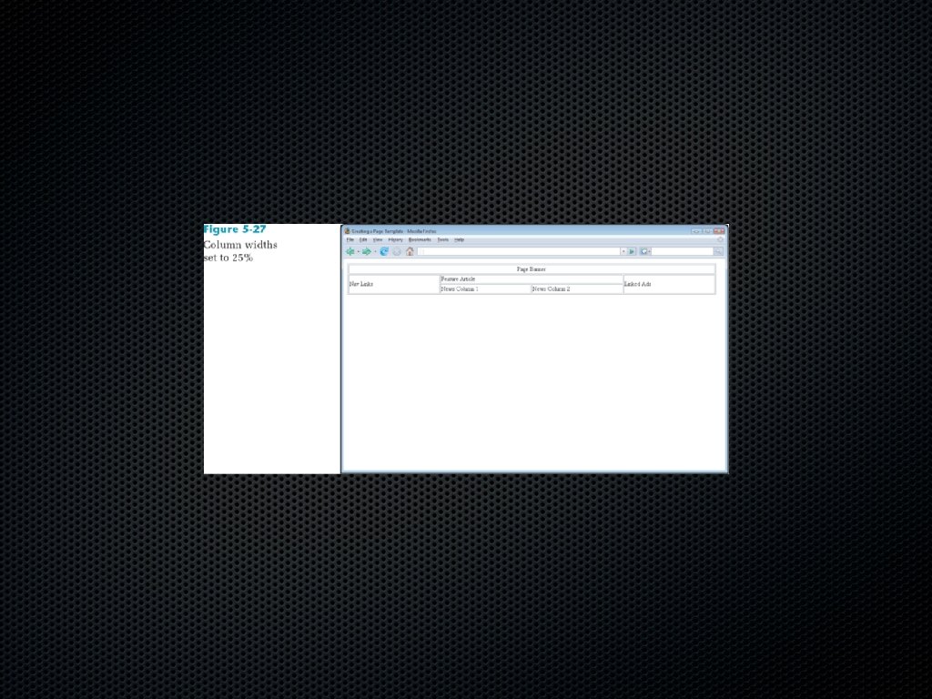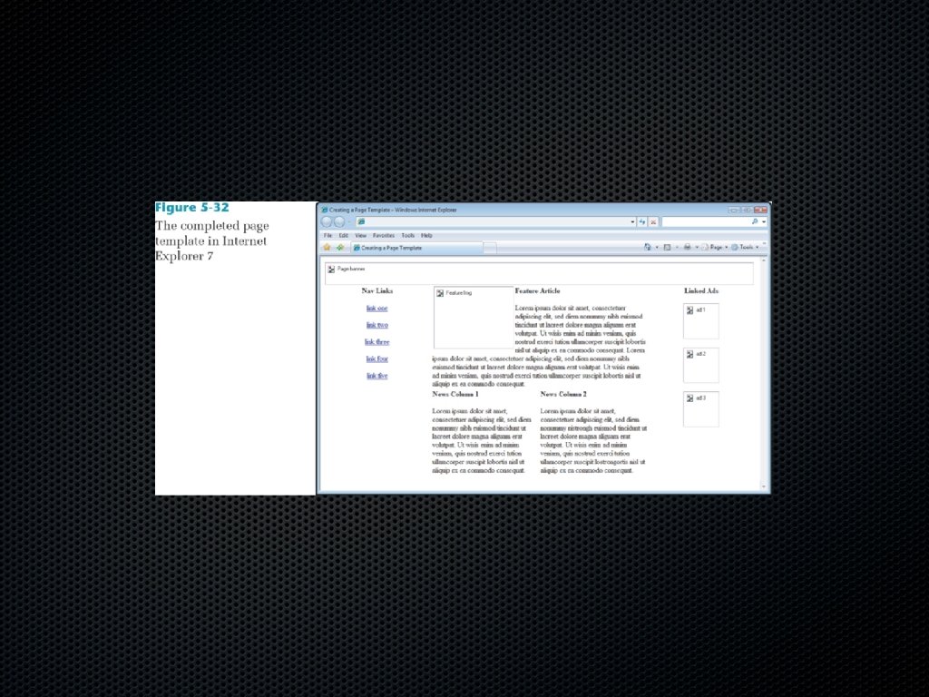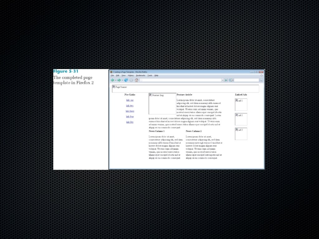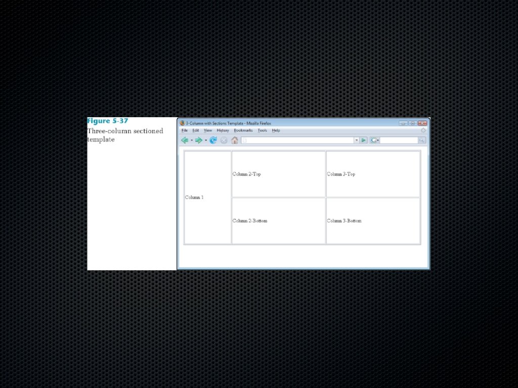 Creating a Page Template Notice that the basic structure of the table is three rows by four columns Each column uses 25% of the total width of the template Row spans and column spans break across the layout to provide visual interest