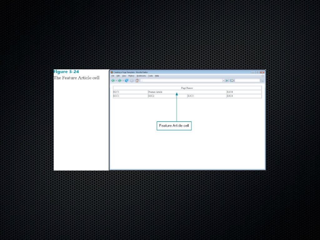 Creating the Feature Article Cell The feature article cell in the layout is R 2 C 2, and spans two columns This column span requires the removal of one cell in row two to make room for the span