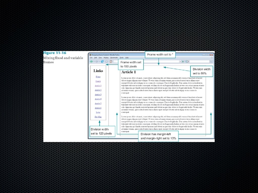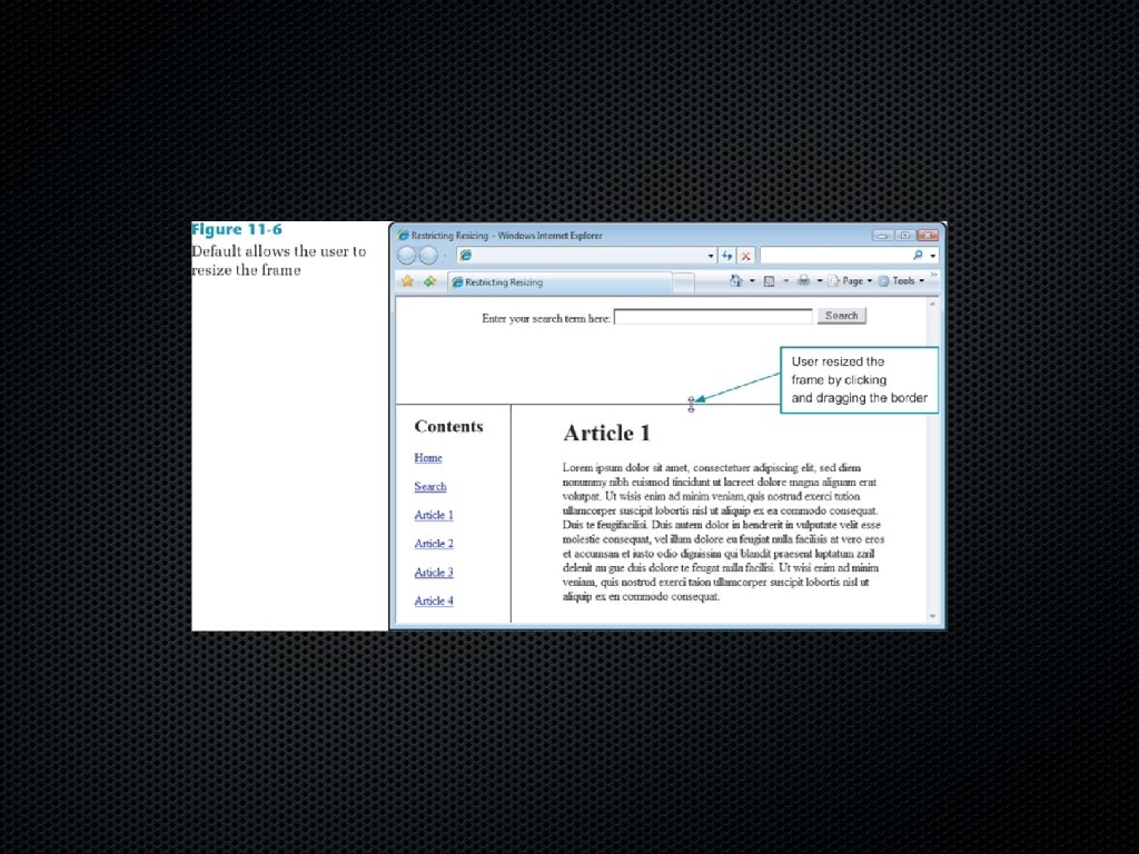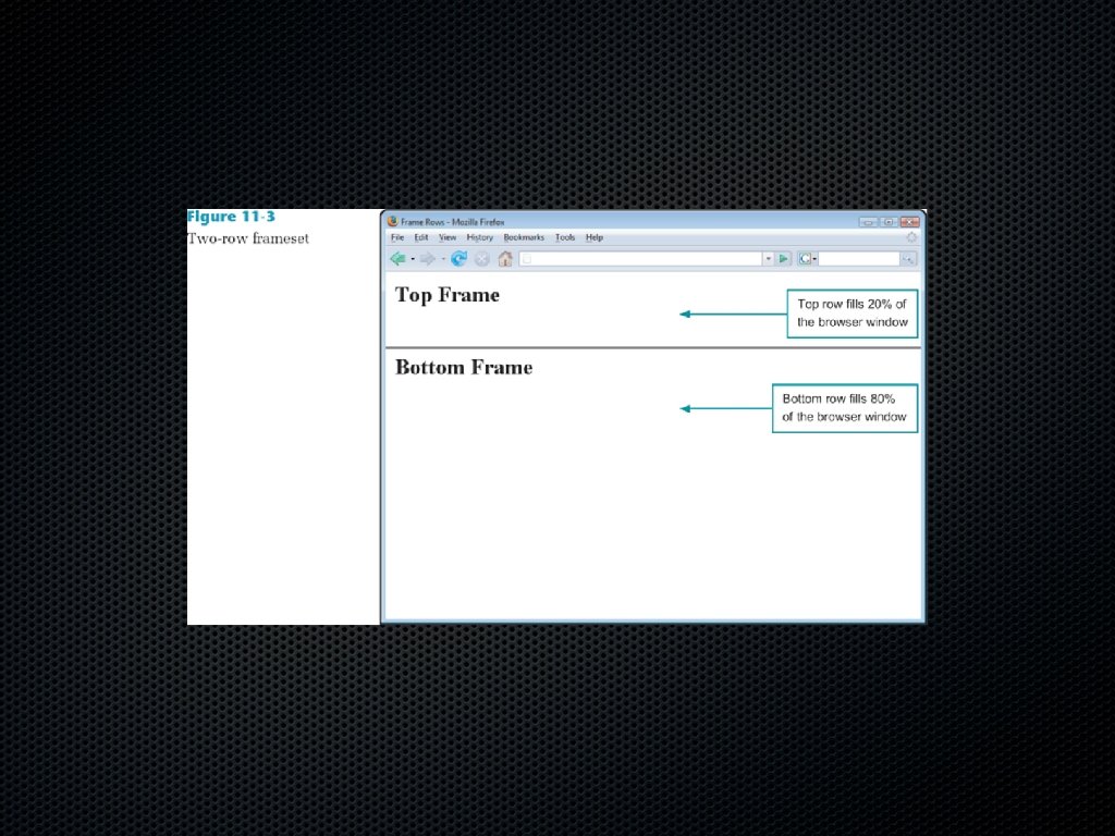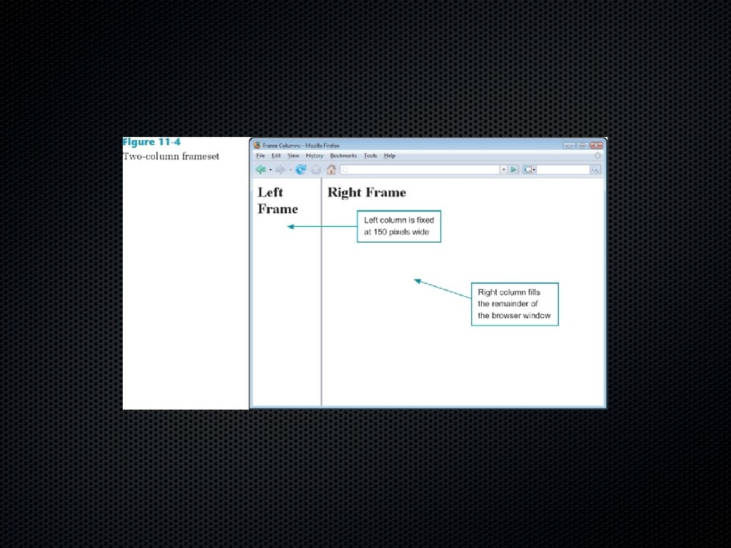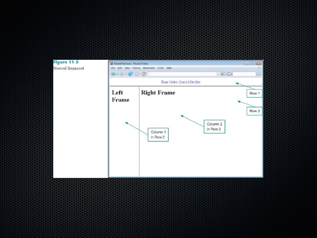 Frameset and Frames The <frameset> element is the container for the frameset code The cols and rows attributes let you specify the characteristics of the frameset You can specify a frameset as either cols or rows, but not both The <frame> element is an empty element The src attribute provides the location of the file that is displayed within the frame