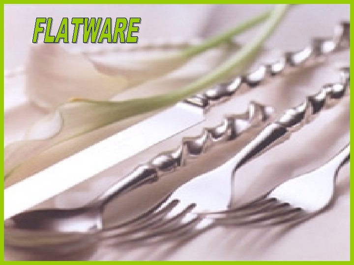 Sterling Silver: Silver's use in flatware began in the late 1800's. Federal law from 1906 requires that companies who call their flatware "sterling" make sure that it contains at least 92. 5% pure silver. The rest is often copper, which gives it more strength. Pure silver is too soft to be used effectively as flatware. Some silver items are marked "925", which refers to the 925 parts of pure silver out of 1000. Sterling silver is an expensive flatware choice, and is considered an “heirloom” or “investment”. Silverplated Flatware – This is made by chemically bonding liquefied silver to a good stainless steel flatware pattern, in very thin layers measured in microns. It takes just 2 -5 microns of silverplating for an inexpensive piece to 60 microns for expensive pieces. (a human hair is about 100 microns. ) Both sterling and silverplated flatware “tarnish”, a discoloration caused by prolonged contact with air, chemicals, or foods such as eggs, vinegar, salt, tea, and coffee. It can be prevented by everyday use or removed by polishing. Handwashing with a mild, non-citrus-scented soap is recommended, with hand-drying and storage in a flannel-type cloth (never plastic or newspaper). Do not allow silver pieces to come into contact with stainless steel. All silver gets scratched, but these scratches eventually give the silver it desired “patina”, or soft, rich glow.